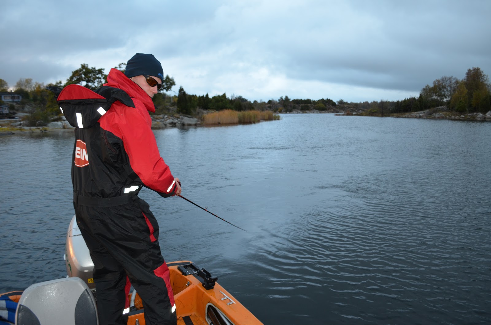 Söndagen bestämde vi oss för att byta område helt och hållet, vi drog i väg och hoppades på storgäddan! Men denna dagen blåste det utav h*lvete så det var svårfiskat men i-piloten skötte sig bra trots kraftiga SO-vindar.